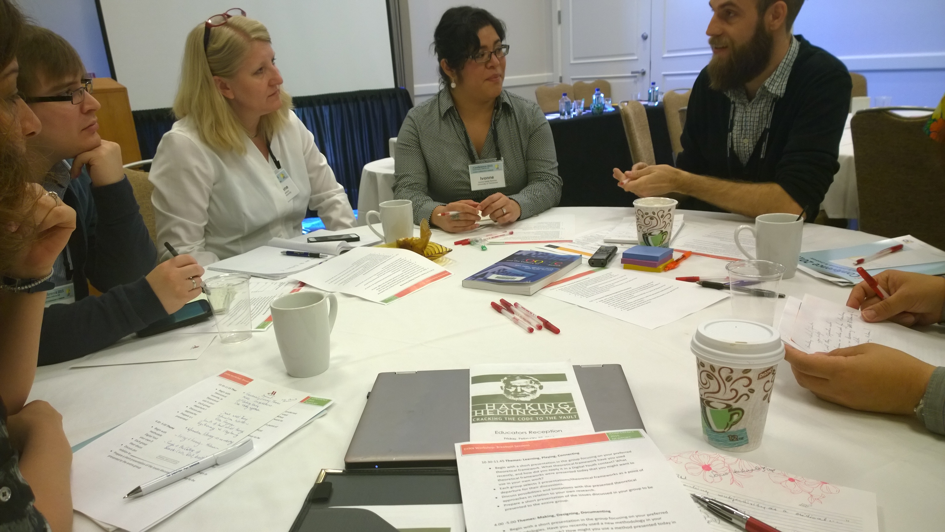 Comstock, S., Tarullo, L. & Battaglia, E. (2015). “Hacking Hemingway: Cracking the Code the Vault, a Collaboratory”, iConference, University of California, Irvine, Newport Beach, CA.